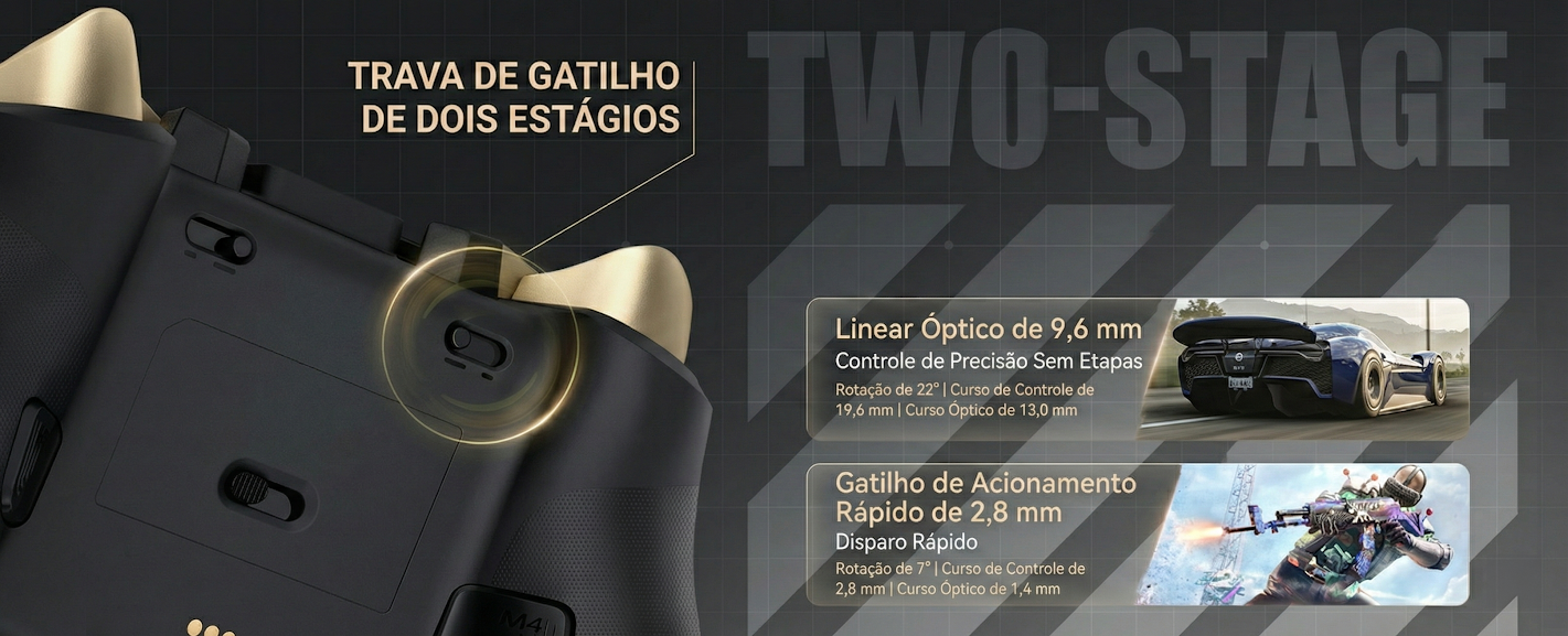 A combinação de joystick Hall 4K com Gatilhos ópticos cria um periférico que se adapta ao seu estilo e executa cada movimento com precisão absoluta.