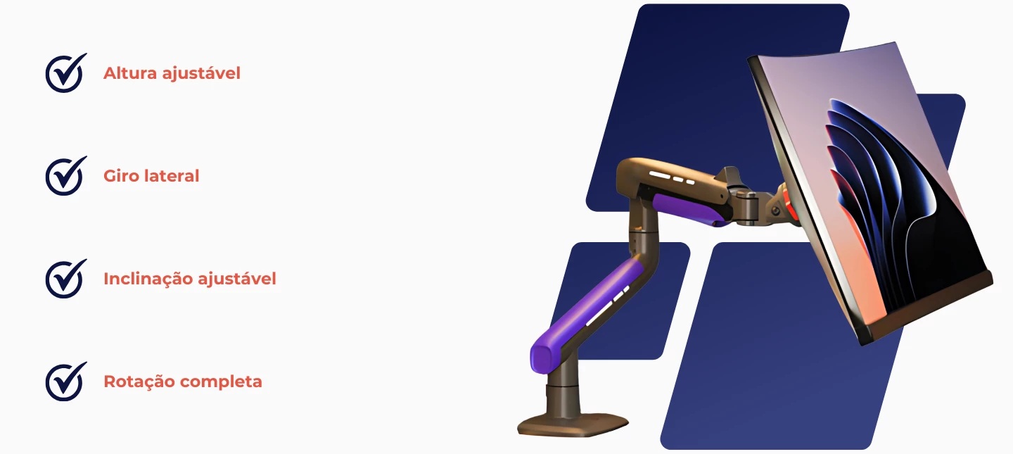 O suporte gamer monitor North Bayou G60 é a escolha ideal para quem busca ergonomia e estilo em seu setup. Compatível com telas lcd, led, oled, qled e plasma, este suporte é versátil e atende a diferentes necessidades. Os padrões vesa de 75x75 e 100x100 garantem uma instalação fácil e segura, permitindo que você ajuste a posição do monitor com facilidade.