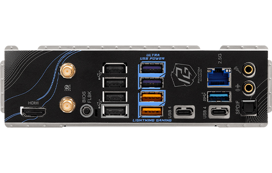 * Only the CPU's integradas graphics can be displayed through USB4 ports. Se quiser utilizar um monitor Tipo-C, por favor, utilize os processadores AM5 Ryzen™ 9000, 8000 e 7000 com gráficos integrados.