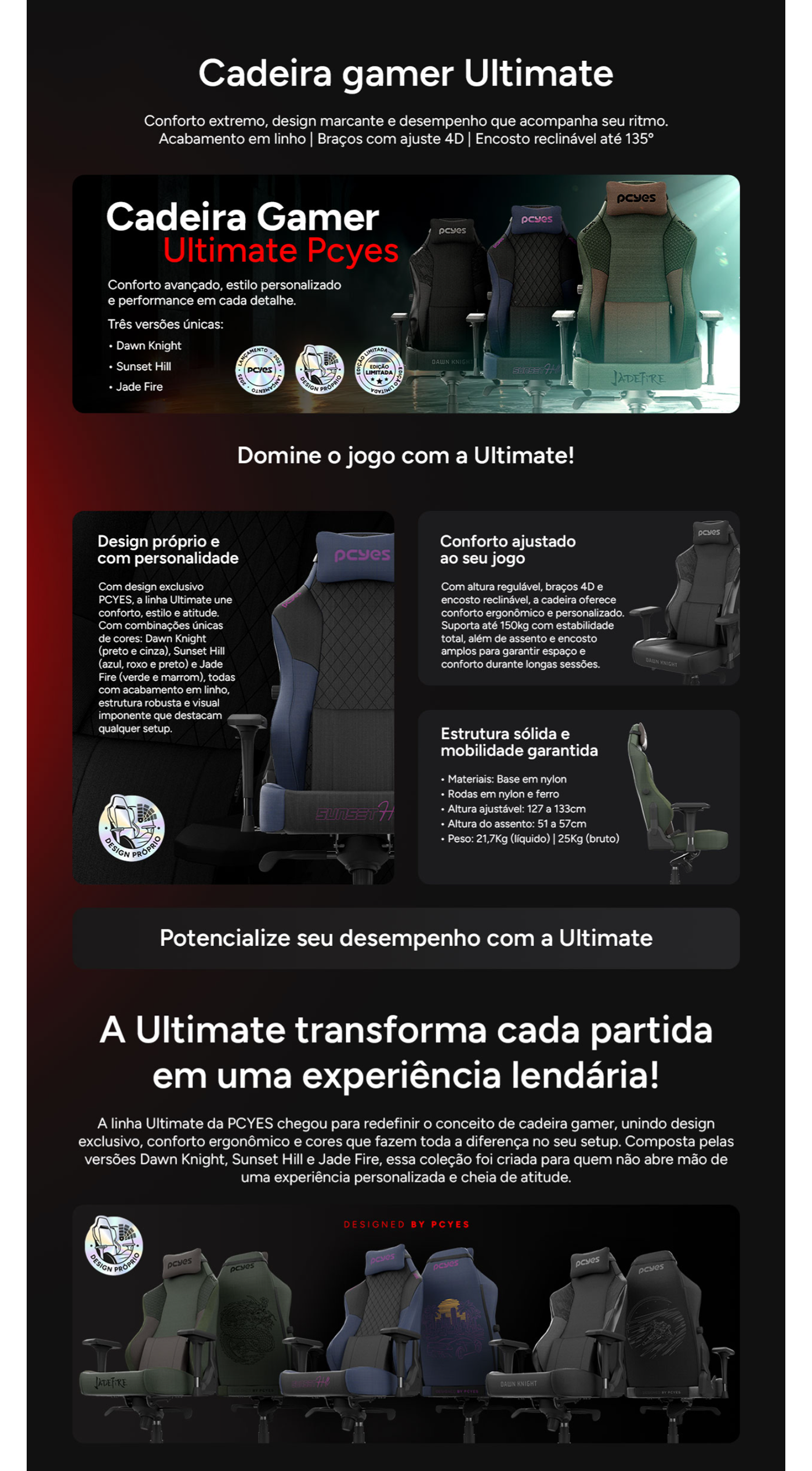 Altura da cadeira: 127-133cm