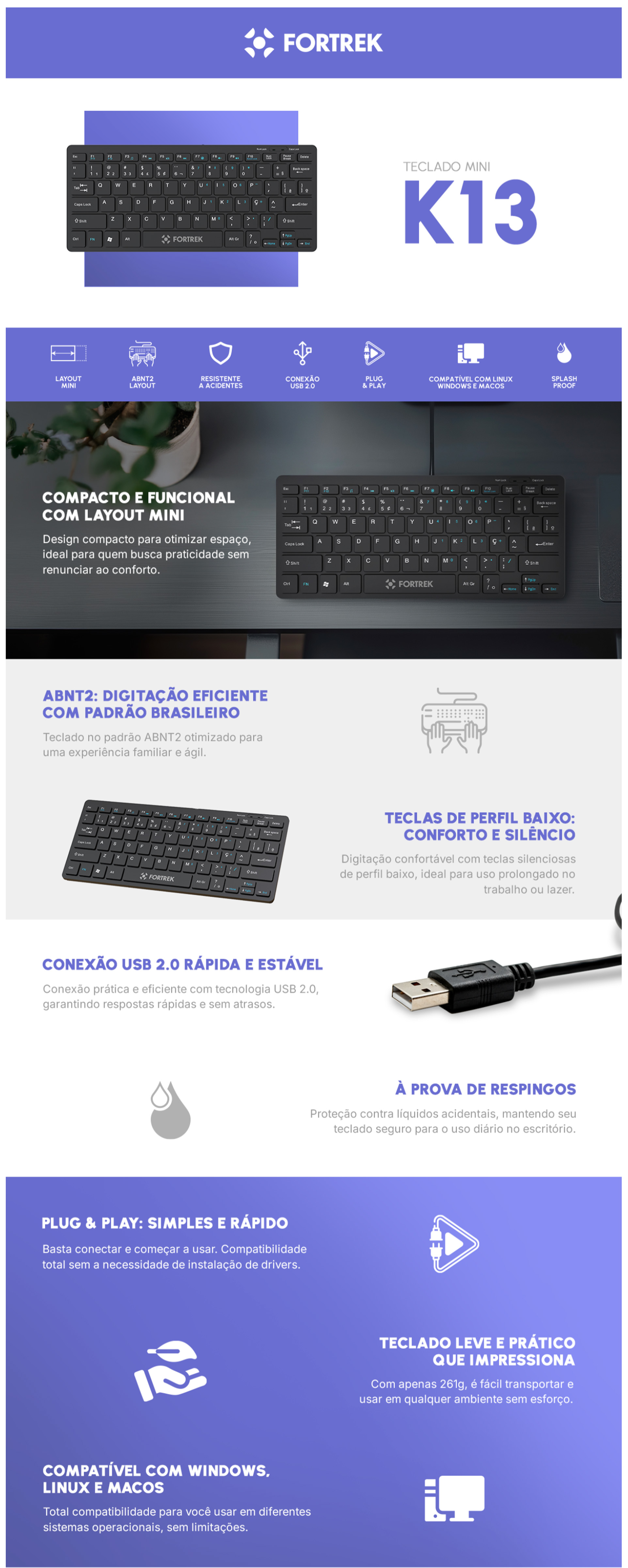 • Perfil das teclas: Baixo/Slim