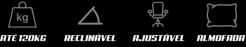A cadeira Gamer Ninja Yako suporta até 120 kg, é reclinável, tem altura ajustável e vem com almofadas para pescoço e lombar, oferecendo conforto e suporte ideais para longas sessões de uso.