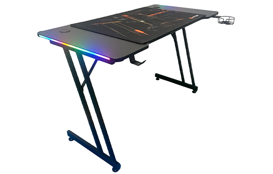 MESA GAMER HAYOM SLIM RGB, COM MOUSEPAD, SUPORTE PARA HEADSET E COPO, PRETO